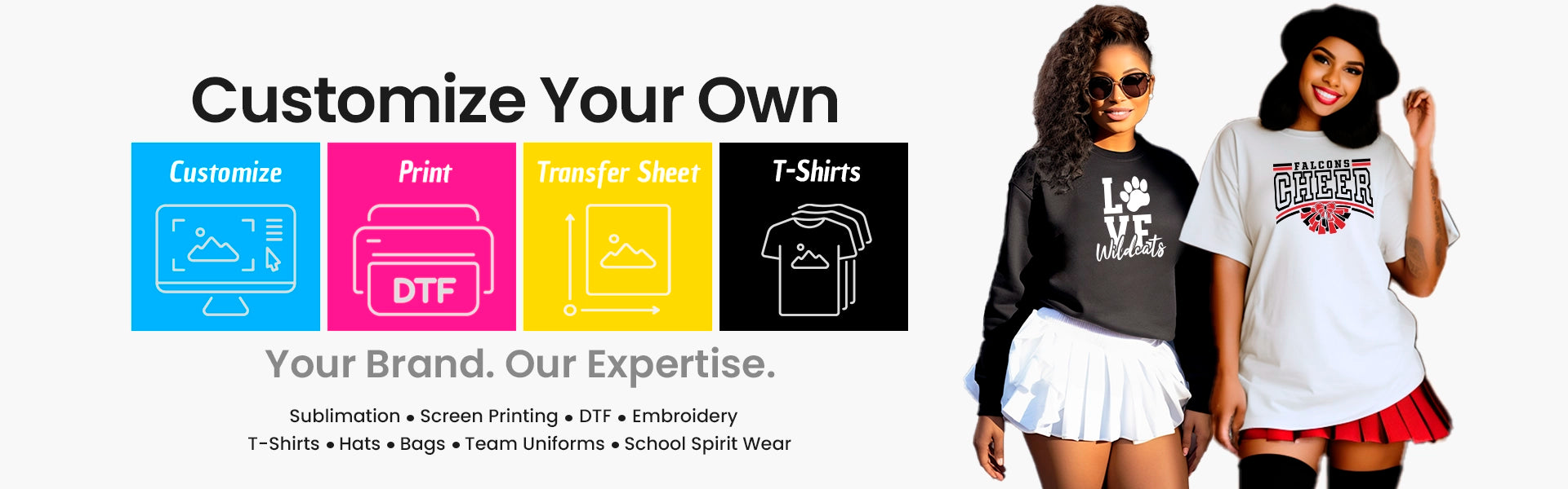 We bring you a curated collection of trusted brands like Nike, Champion, Under Armour, and The North Face®, perfect for customization. Elevate your apparel with premium products designed for teams, businesses, and special events. From comfort to durability, we’ve got you covered with styles that stand out.