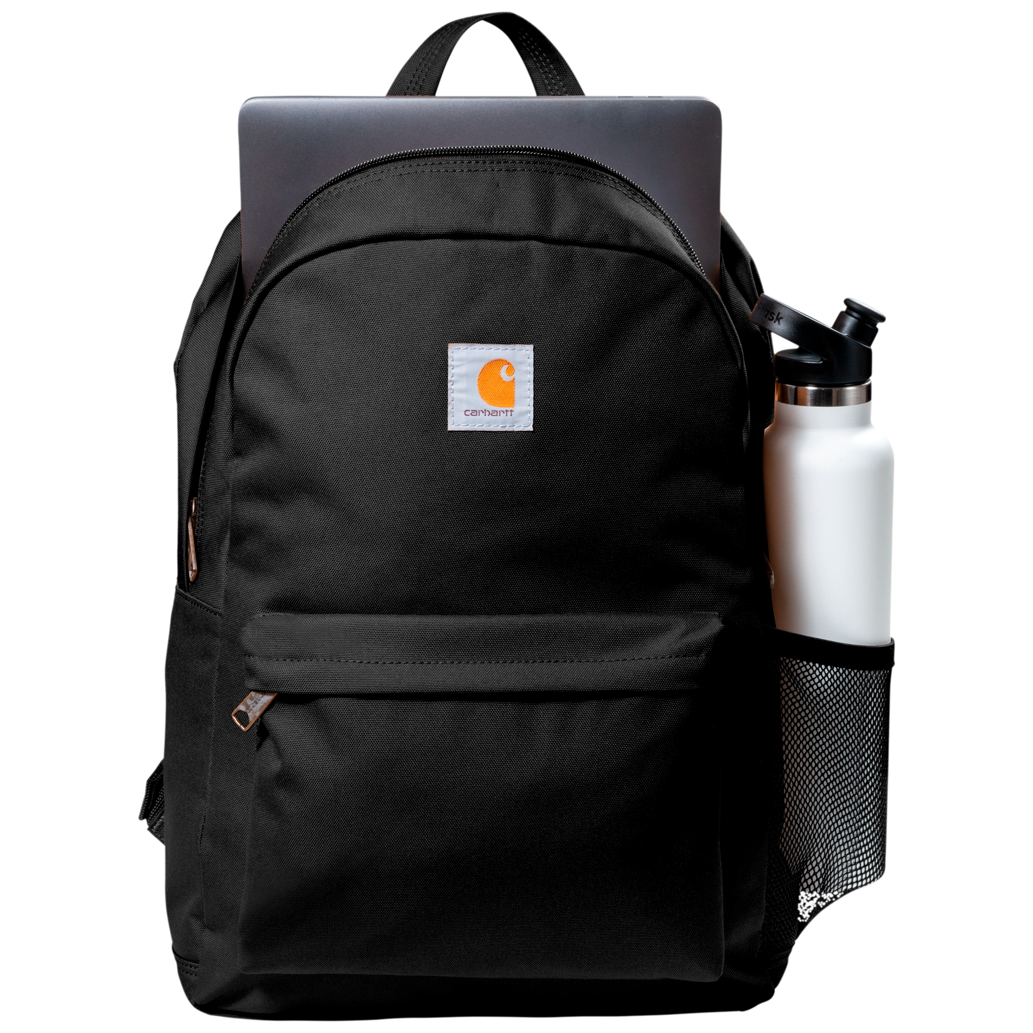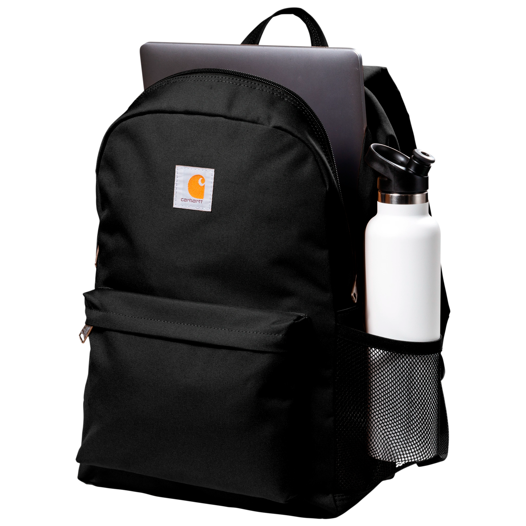 - Classic Utility Design: Mesh side pocket for bottles or accessories and a sewn-on Carhartt label for a rugged, professional look.